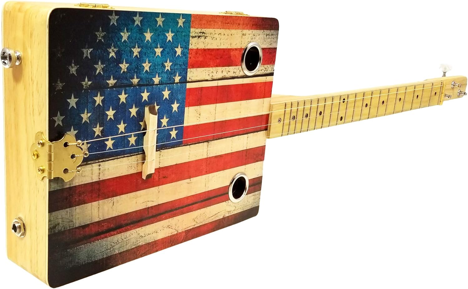 "Old Glory" 3-string Acoustic-Electric Cigar Box Guitar - Fun to Play, Made in the USA!